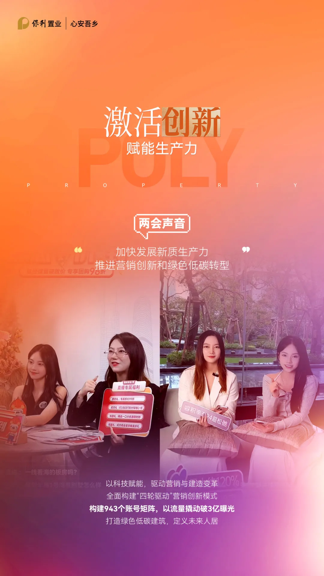 拥抱数字化浪潮,重塑营销与质造的驱动力。紧跟“新质生产力”号召,保利置业全面推进智能化转型。一方面,营销创新构建“四轮驱动”模式,打造943个矩阵账号,以流量撬动破3亿曝光。另一方面,将科技节能降碳融入全生命周期。上海保利琅誉以近零能耗标准,创新模块化建造体系;宁波明湖金茂府集成“地源热泵+毛细管网+置换式新风”系统,树立区域绿色建筑标杆,定义未来人居新标准。