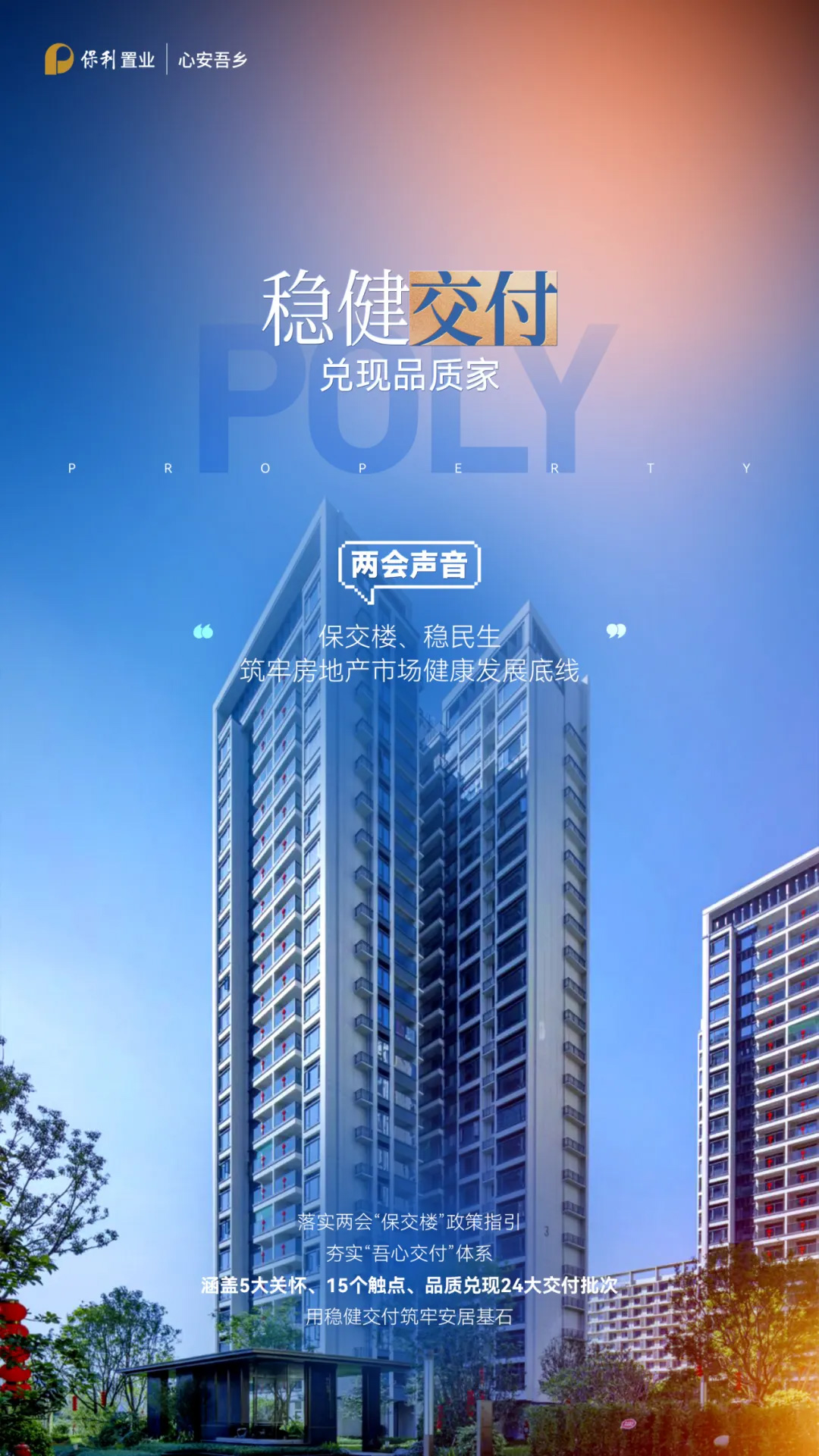 品质是底线,责任是生命线。后续,保利置业将以“两会精神”为指引,以消费者权益日为契机,把高质量发展刻入骨髓,把市场客户需求落到实处,以实干笃定前行,用品质回应期盼,为广大人民的美好生活贡献保利力量。